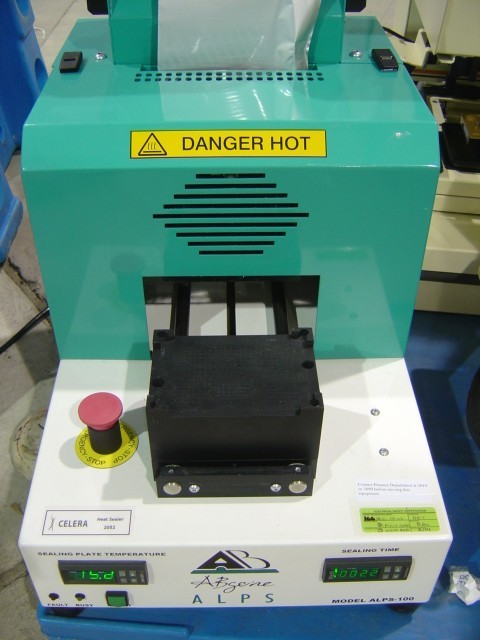 AB Gene ALPS 100 Heat Sealer 000619, unit is in excellent condition and was used until laboratory consolidation occured, counter says approx. 27000, unit in mint condition