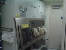 ISO-5 inner chamber, positive pressure HEPA-filtered. The